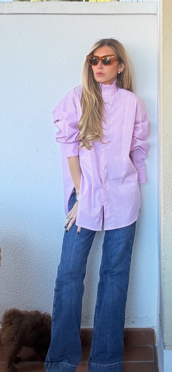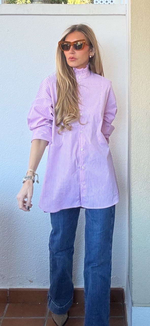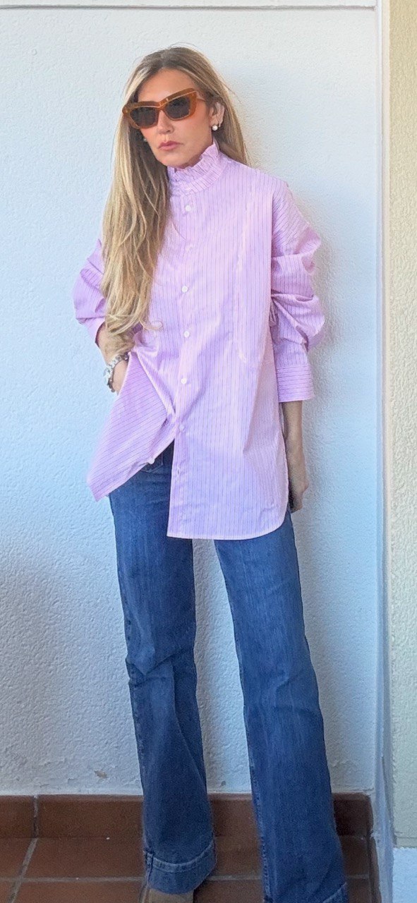 Camisa Turin en color rosa, con rayas, cuello alto y oversize