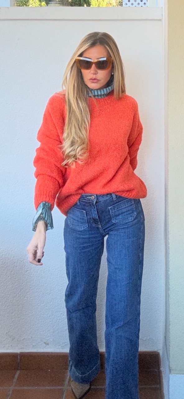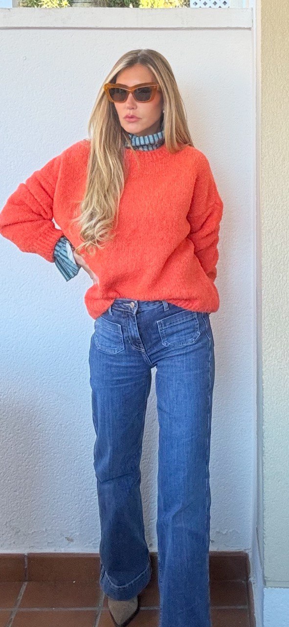 Jersey Naranja, de lana, cuello caja y talla única. Un color súper favorecedor